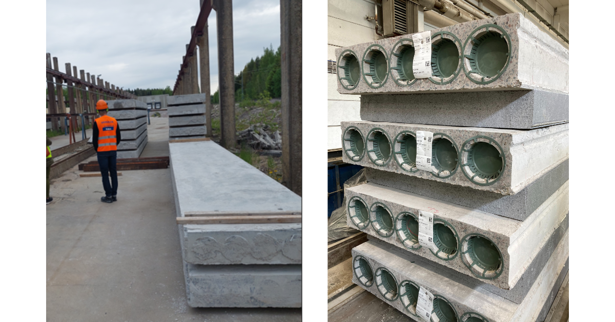 • Logistics and refurbishment in the factory are prepared so that the factory workflow is continuous and resembles manufacturing processes. Planning the logistics of hollow-core slabs and planning their tagging so that information about the origin of the slabs is maintained throughout the process.