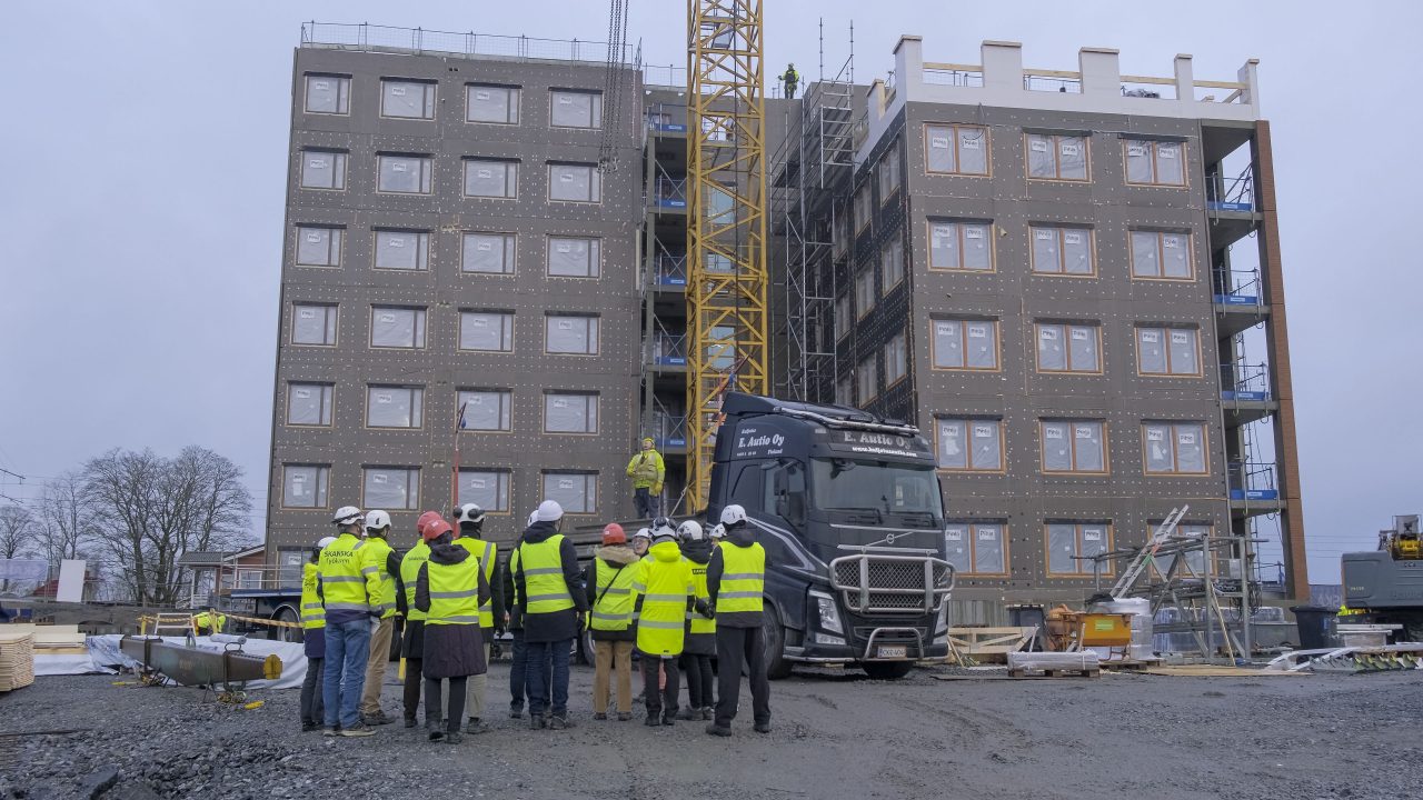 The third Finnish mini-pilot was built during autumn-winter 2025, with the last reused elements installed in December. Like the first mini-pilot, this building is also a block of flats. It was built by Skanska in the new Tampere district Hiedanranta, with the housing provider ‘TA’ as the client. It involves 55 reused elements originating from the project’s donor building: 35 hollow-core slabs, 13 columns and 7 beams. As was for the second mini-pilot, Ramboll Finland acted as the responsible structural designer, and the elements were refurbished by Consolis Parma.
